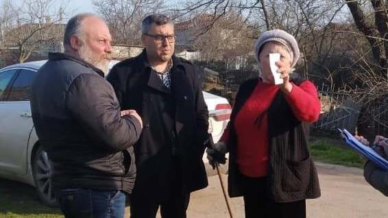 Начальник управления единого заказчика Сергей Органов совместно с депутатами городского совета Дмитрием Андропуло и Александром Савченко пообщался с жителями поселка Аджимушкай, Старого Стеклотарного района, ул. Гагарина, Пошивальникова, Чкалова.
